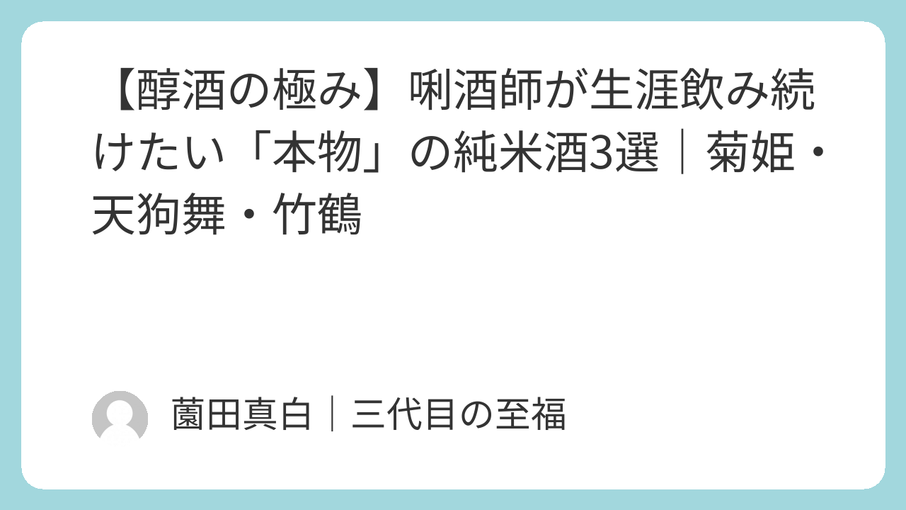 【醇酒の極み】唎酒師が生涯飲み続けたい「本物」の純米酒3選|菊姫・天狗舞・竹鶴